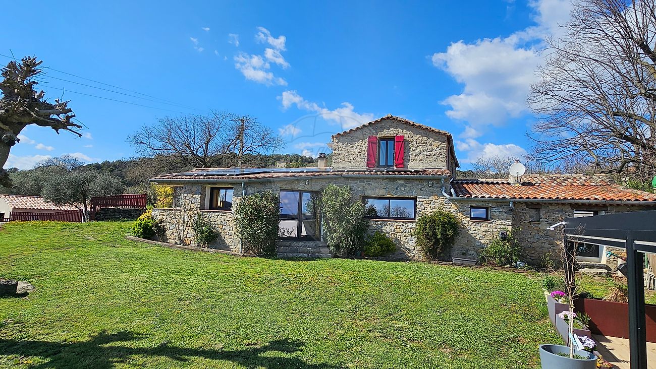 Le jardin offre plusieurs espaces intimistes : le salon avec son coin barbecue sous la pergola, la belle piscine 8 x 4,5, les différents paliers (restanques) en pierres ornés d'oliviers, d'arbres fruitiers et de grandioses chênes, un jardin potager, un poulailler.